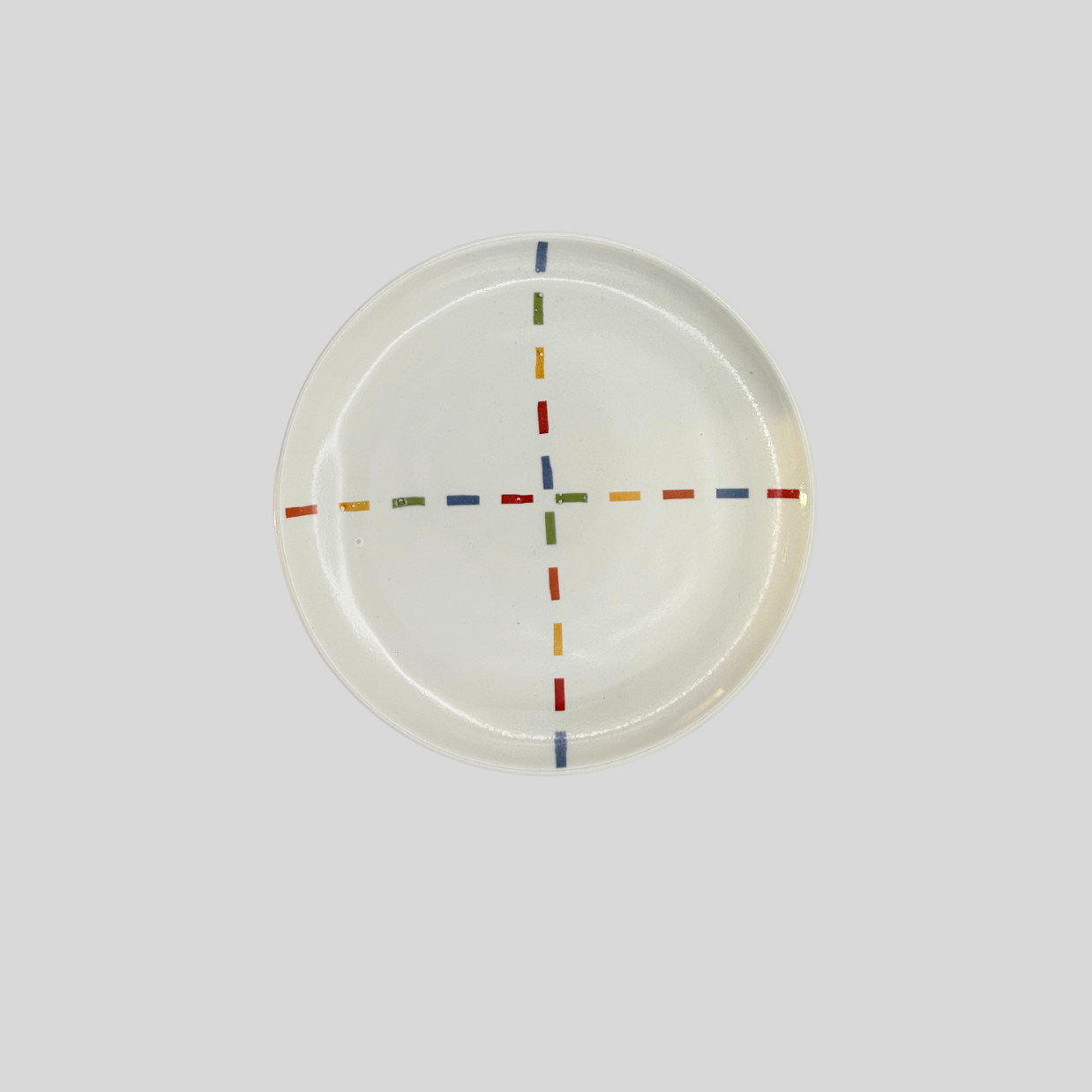 The Shapes series breathes new life into classic design movements with a modern twist. Inspired by Bauhaus and minimalism, it showcases a bold interplay of primary colors and clean lines. Set against a crisp white background, eye-catching stripes, lines, and circles in shades of blue, red, yellow, and green dance across the canvas. These minimalist nods to linear forms add a touch of playful pattern without overwhelming the design's overall simplicity.