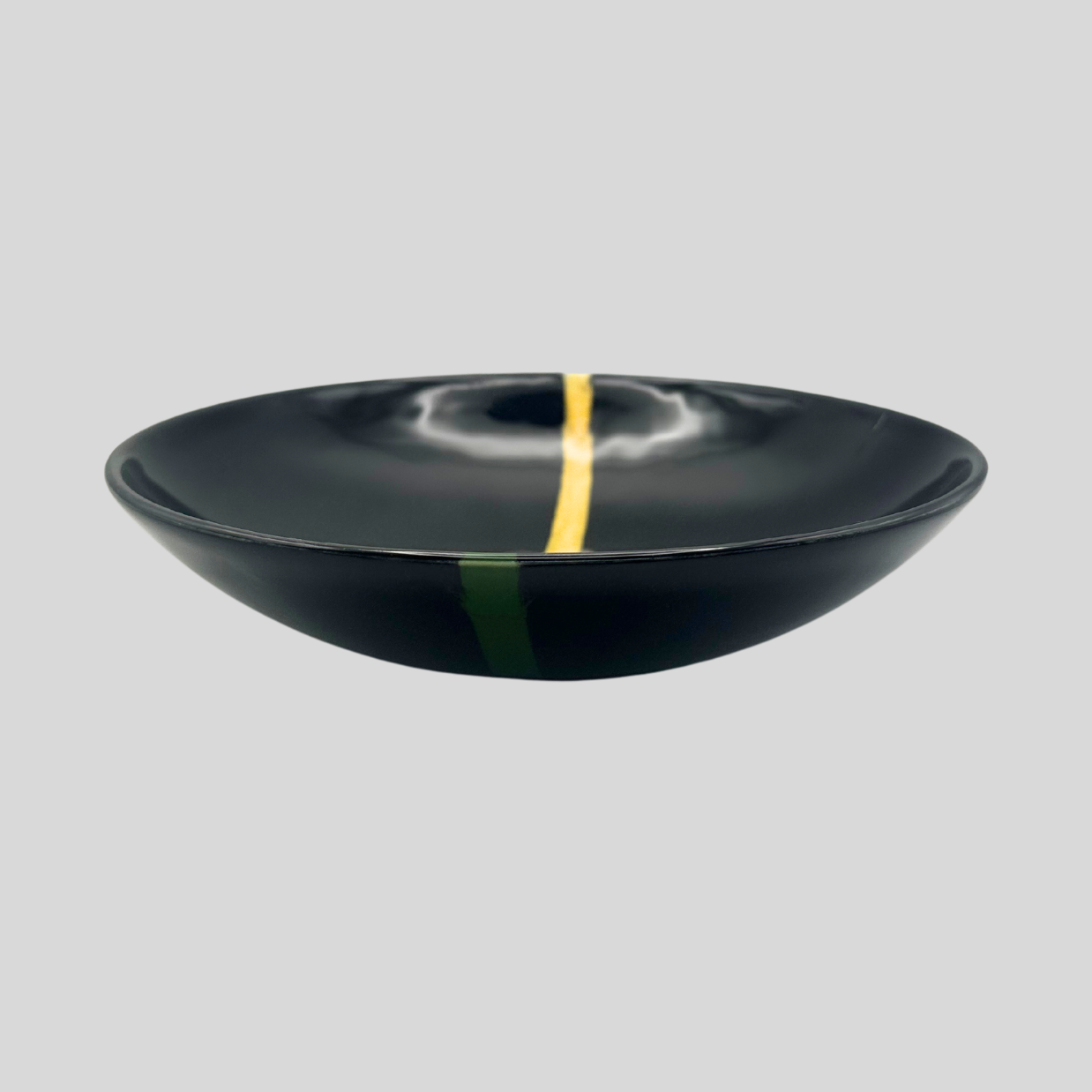 The Black stripe series embrace a splash of modern style with this striking ceramic plate. The sleek black base provides a sophisticated foundation for the eye-catching horizontal stripe. Formed by a delicate pairing of ocean blue and grassy green and red, this stripe adds a touch of playful flair without overwhelming the minimalist design. Perfect for adding a pop of personality to your table setting or as a decorative accent piece, this plate is sure to turn heads.